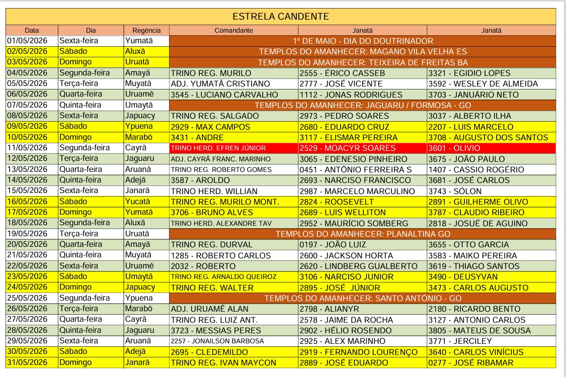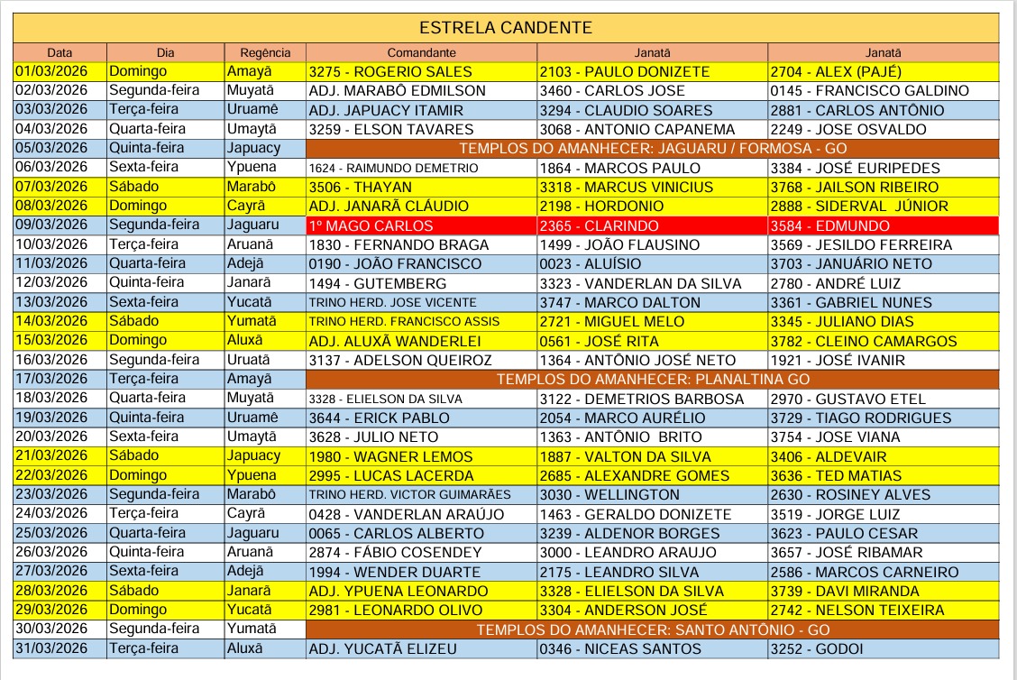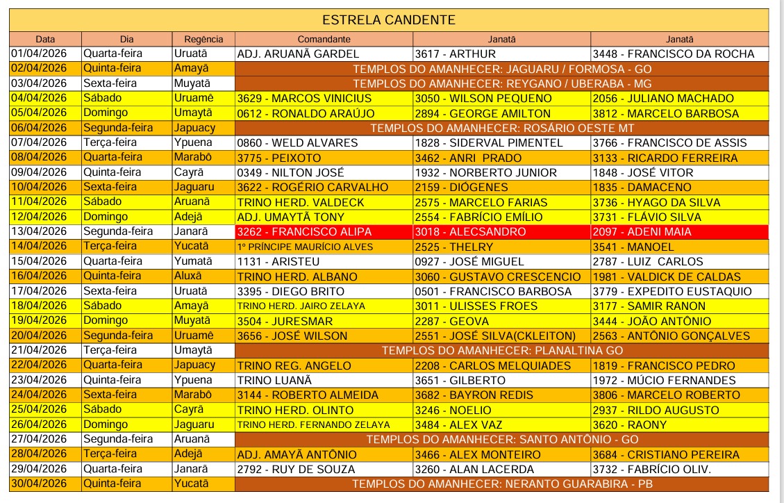 CALENDÁRIO OFICIAL